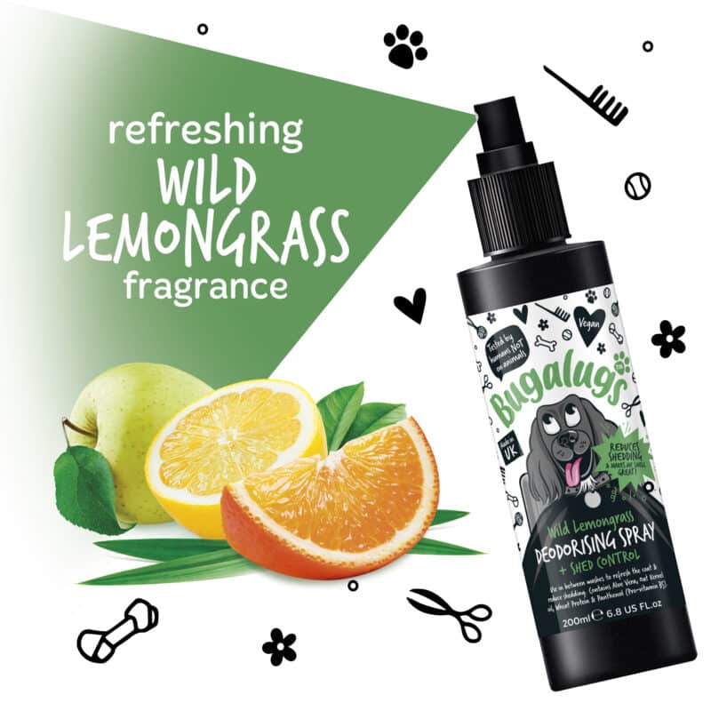 Bugalugs Wild Lemongrass Dog Deodorising Spray s ochranou proti pĺznutiu