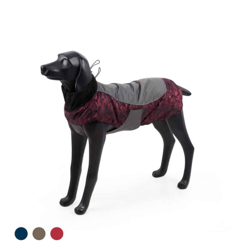 Oblečenie pre psov – zimná, vodeodolná bunda podšitá teplou a pohodlnou flisovou tkaninou, s nastaviteľným golierom na krku a pásom. Pre lepšiu viditeľnosť sa na bunde nachádza reflexný pruh. Taktiež tam je otvor na chrbte na pripevnenie vodítka/popruhu.