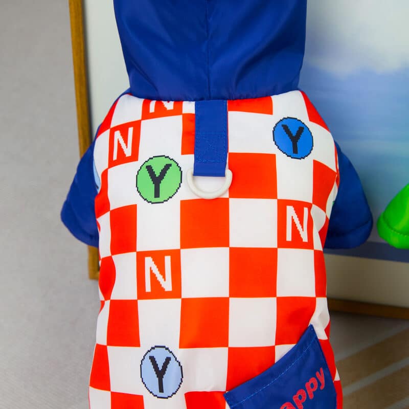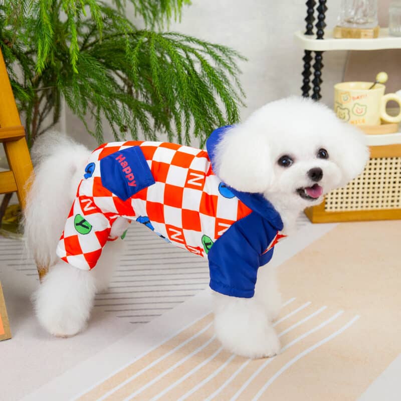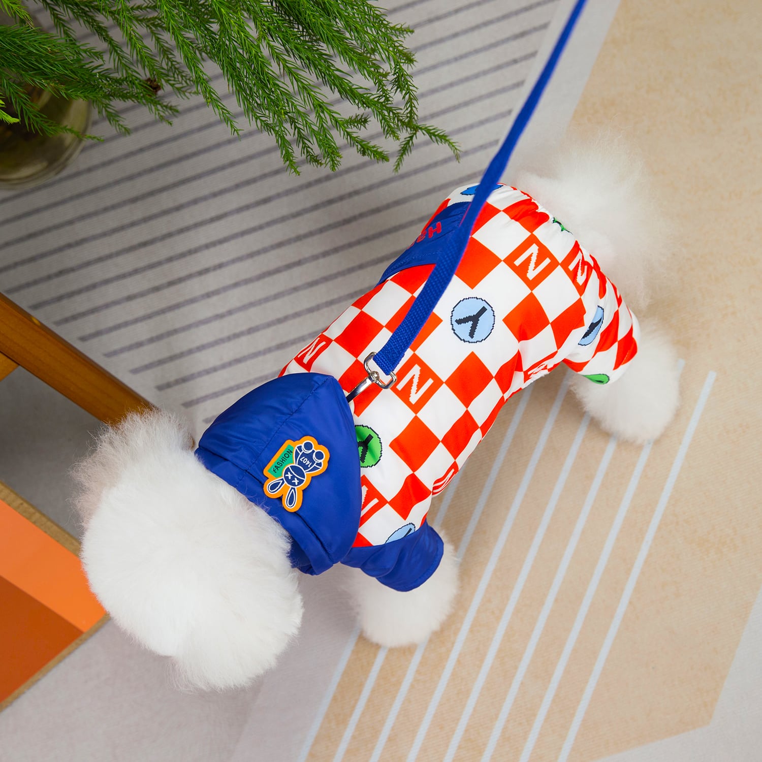 Oblečenie pre psov – hrubý, flisom podšitý, nepremokavý, zimný a veľmi pohodlný overal pre psov sa oblieka sa cez hlavu alebo pomocou pukacích gombíkov zospodu. Overal sa výborne prispôsobí každej postave psíka a účelovo zahreje. Jeho veľkou výhodou je možnosť pripnúť vodítko na chrbát overalu.