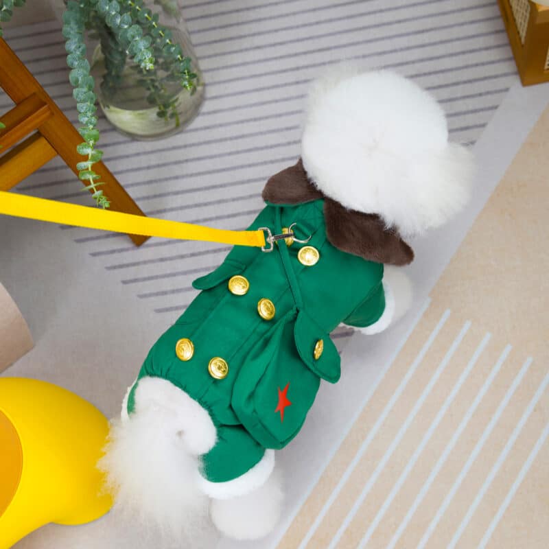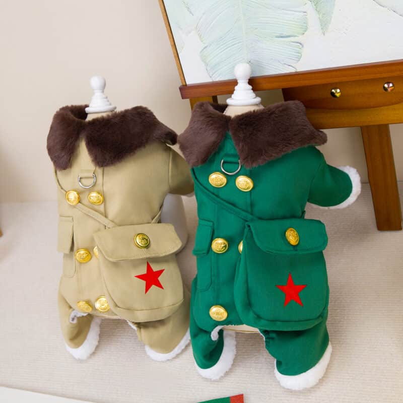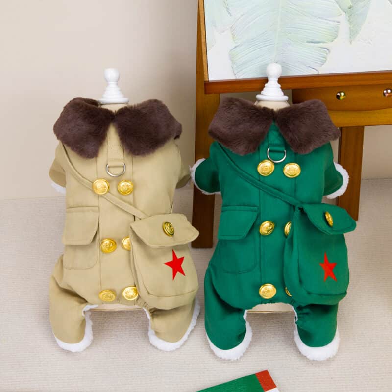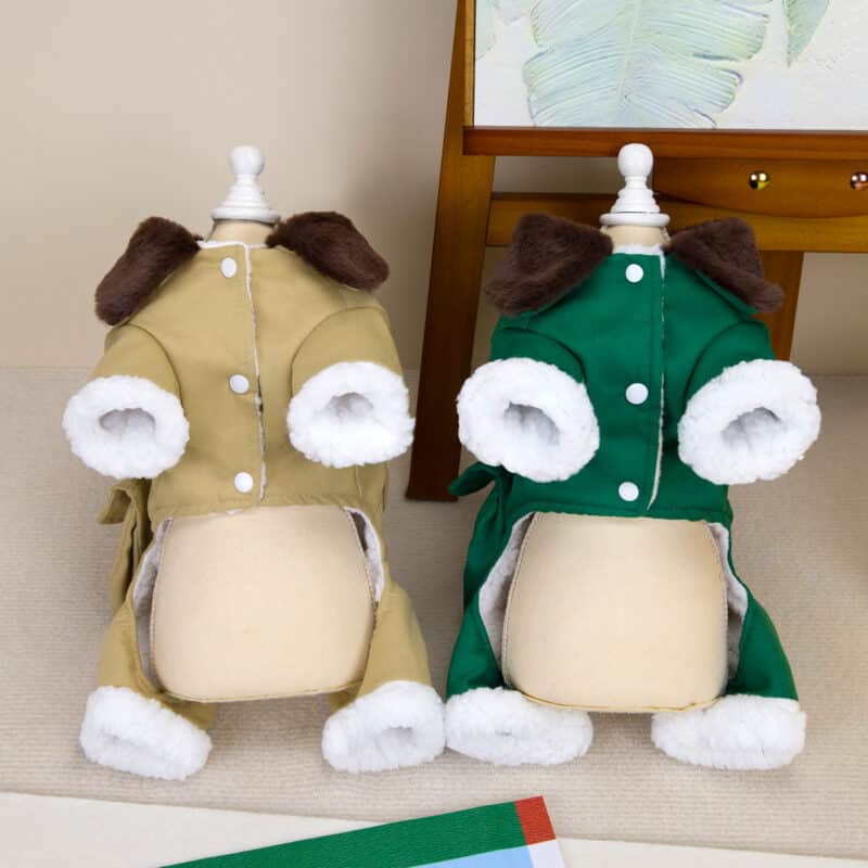 Oblečenie pre psov – hrubý, kožušinou podšitý, zimný a veľmi pohodlný overal pre psov sa oblieka sa cez hlavu alebo pomocou pukacích gombíkov zospodu. Overal sa výborne prispôsobí každej postave psíka a účelovo zahreje. Jeho veľkou výhodou je možnosť pripnúť vodítko na chrbát overalu a jeho jedinečnosť prevedenia.