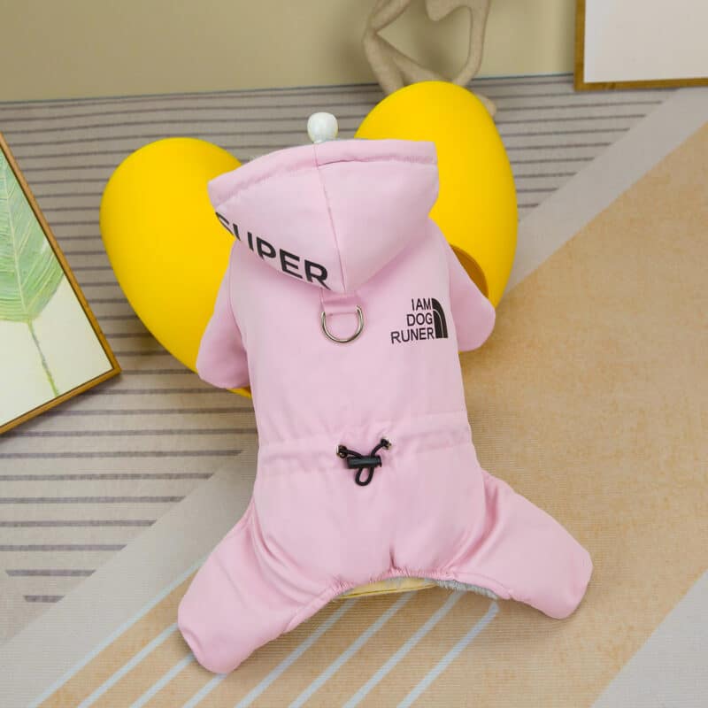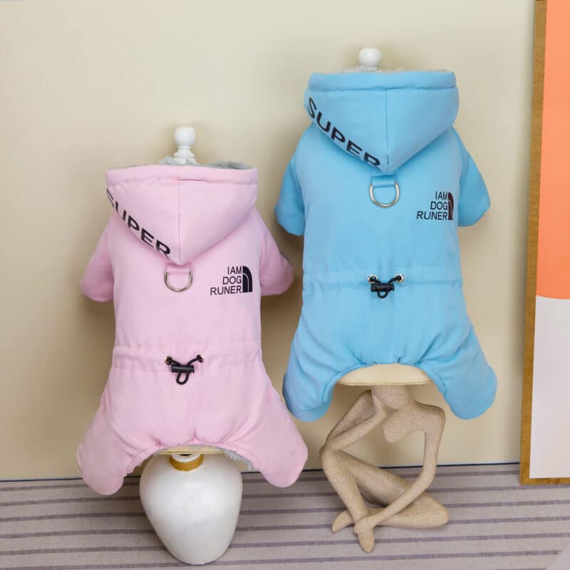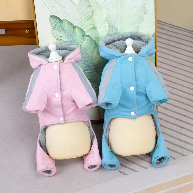 Oblečenie pre psov – hrubý, flisom podšitý, nepremokavý, zimný a veľmi pohodlný overal pre psov sa oblieka sa cez hlavu alebo pomocou pukacích gombíkov zospodu. Overal sa výborne prispôsobí každej postave psíka a účelovo zahreje. Jeho veľkou výhodou je možnosť pripnúť vodítko na chrbát overalu, ako aj sťahovacia gumička v obvode pásu.