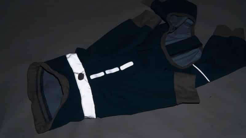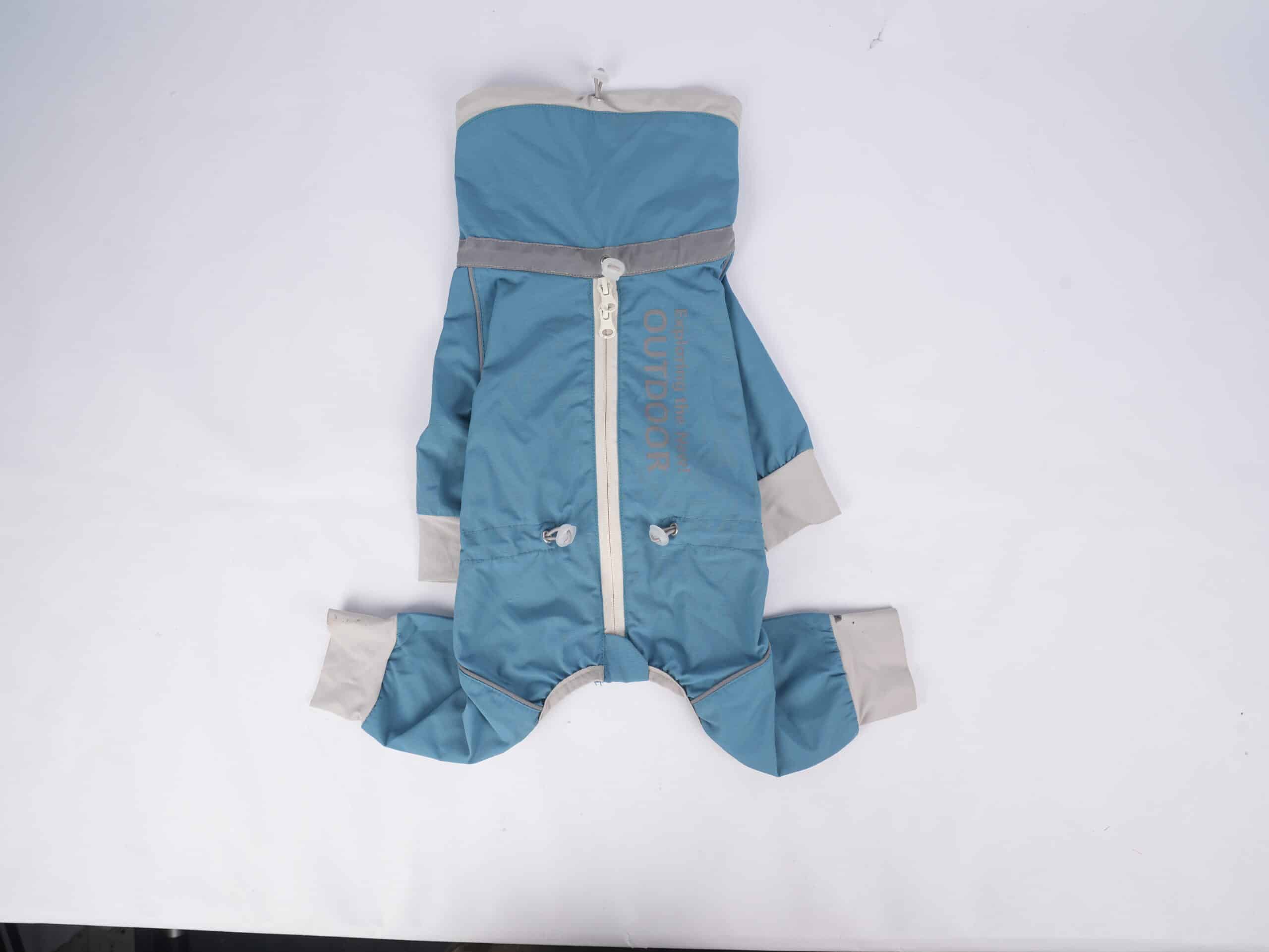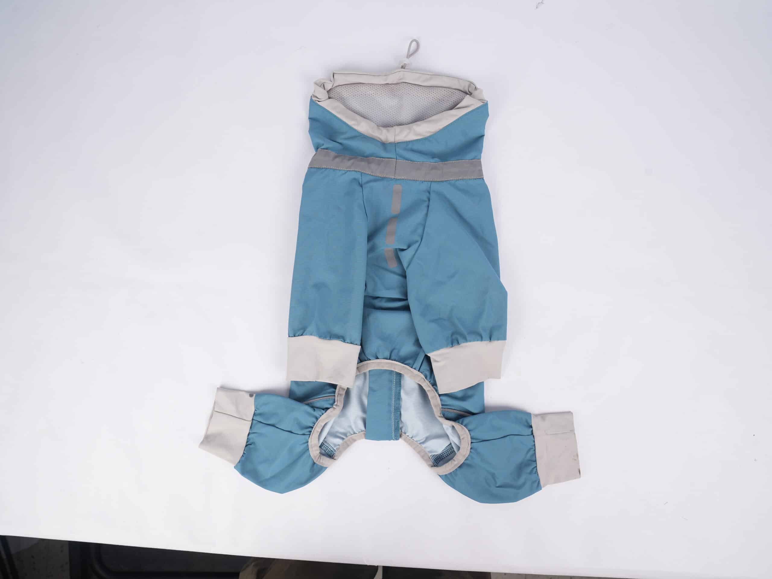 Oblečenie pre psov – polyesterový, štýlový pršiplášť pre psov je ľahko nositeľný, nakoľko nie je prehnane hrubý. Ochráni psíka pred dažďom, ako aj na predných, tak aj na zadných labkách. Má na sebe reflexné pásiky a vďaka sťahovacej gumičke na krku, aj v obvode pásu, je možné ho tak lepšie prispôsobiť postave psíka. Pršiplášť sa oblieka cez hlavu. Je veľmi pohodlný, skladný a vhodný aj do prudkého dažďa.