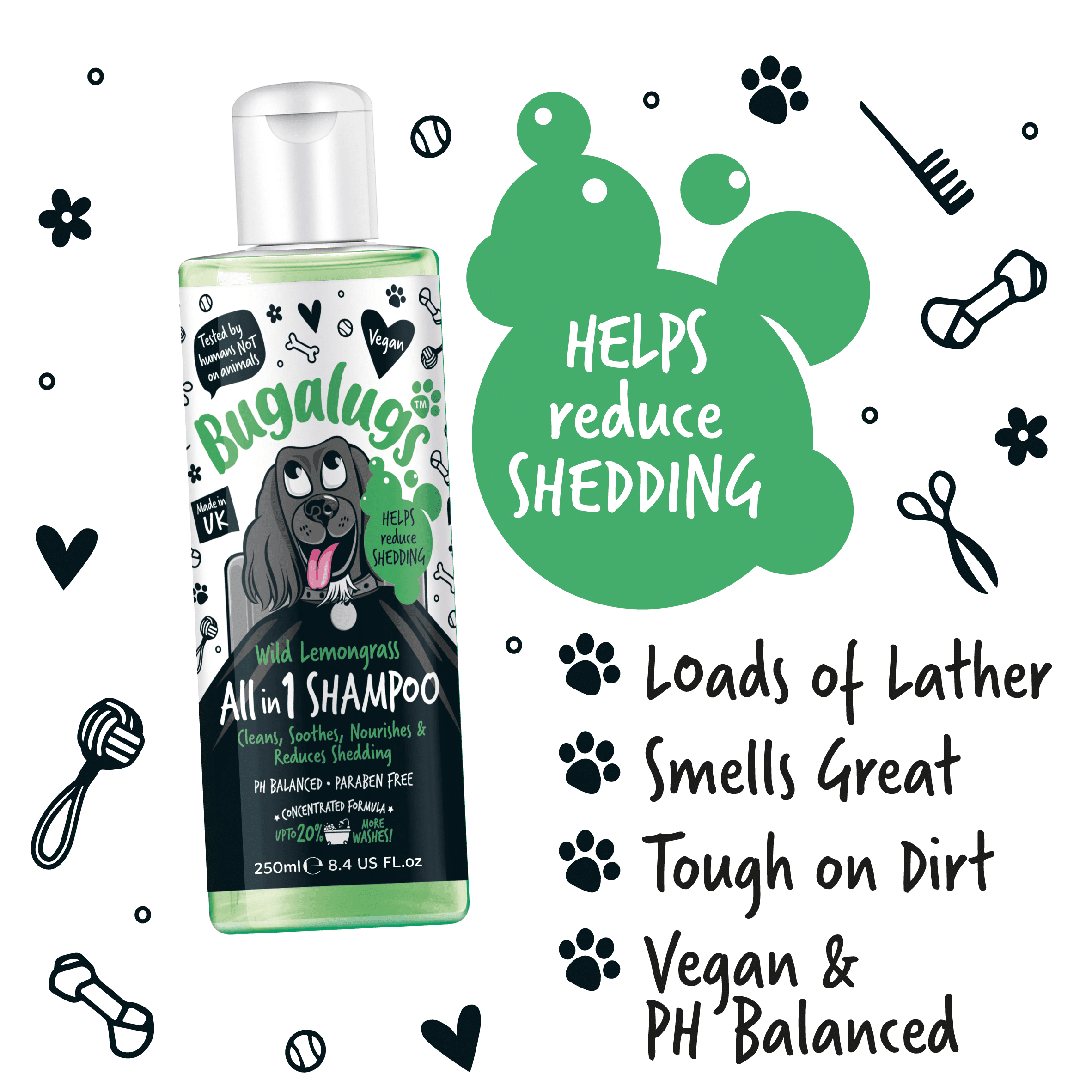 Bugalugs šampón na zníženie vypadávania srsti Wild Lemongrass 4 v 1 šampón pre psov