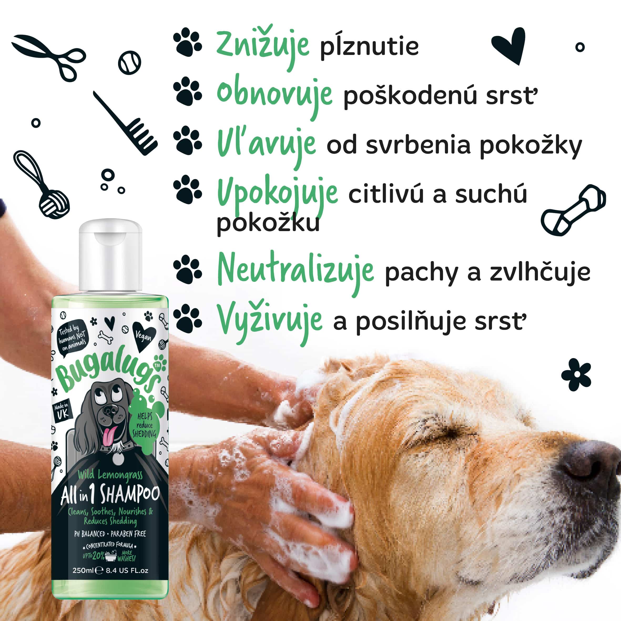 Odporúčame kombinovať s naším Bugalugs dezodorant pre psov – Wild Lemongrass 200 ml