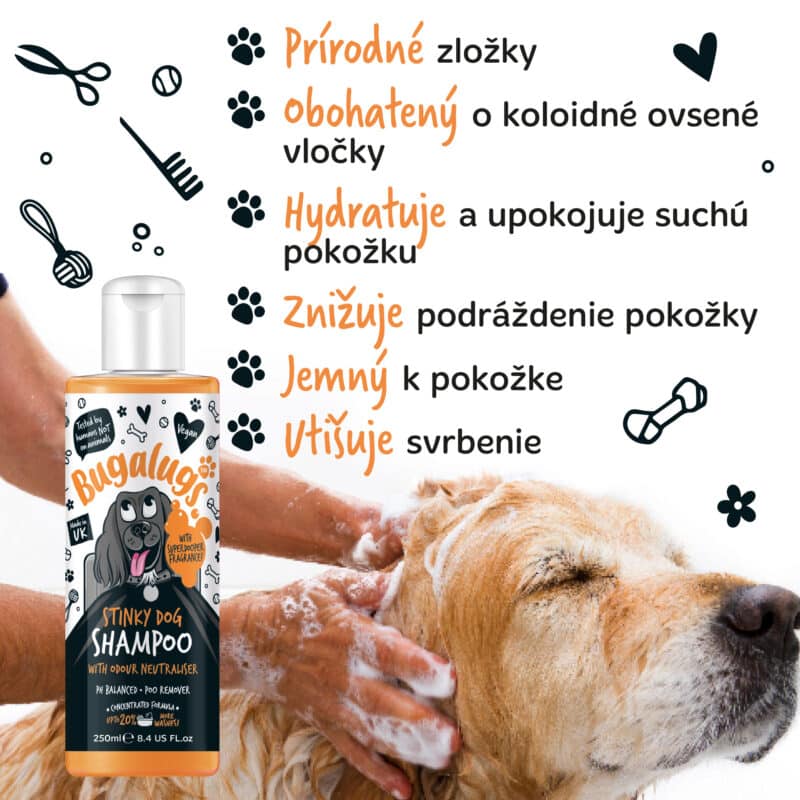 Odporúčame kombinovať s naším Bugalugs dezodorant pre psov – Stinky Dog 200 ml