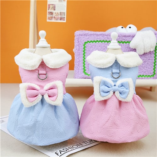 Oblečenie pre psov – jedinečné, štýlové, zimné šaty pre psov sú ideálne na bežné nosenie počas chladných dní. Sú z príjemného materiálu, kožušinou podšité a Vaša fenka v nich bude neprehliadnuteľná. Obliekajú sa cez hlavu alebo pomocou pukacích gombíkov.